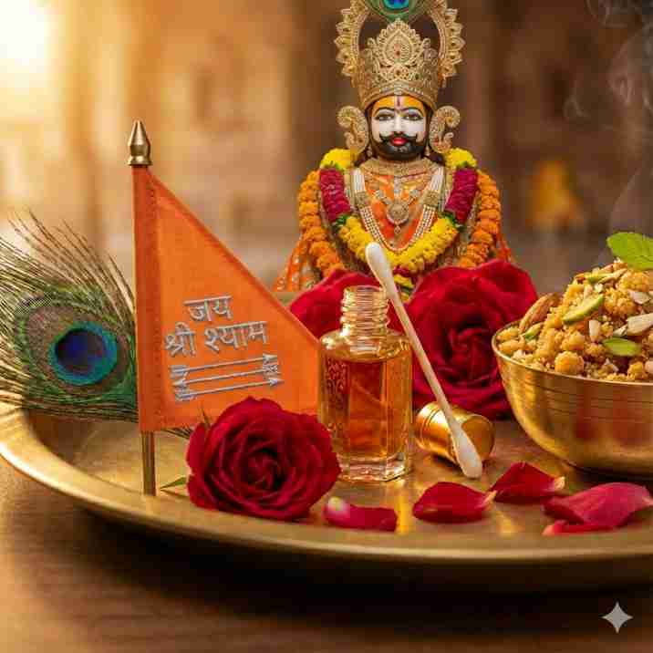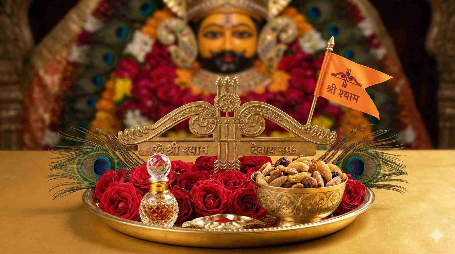 चढ़ावा वह पवित्र अर्पण है जो भक्त श्याम प्रभु को प्रेम, श्रद्धा और भक्ति के भाव से समर्पित करते हैं — जैसे गुलाब का फूल, मोरपंख, चूरमा, इत्र, निशान, दीपदान आदि।