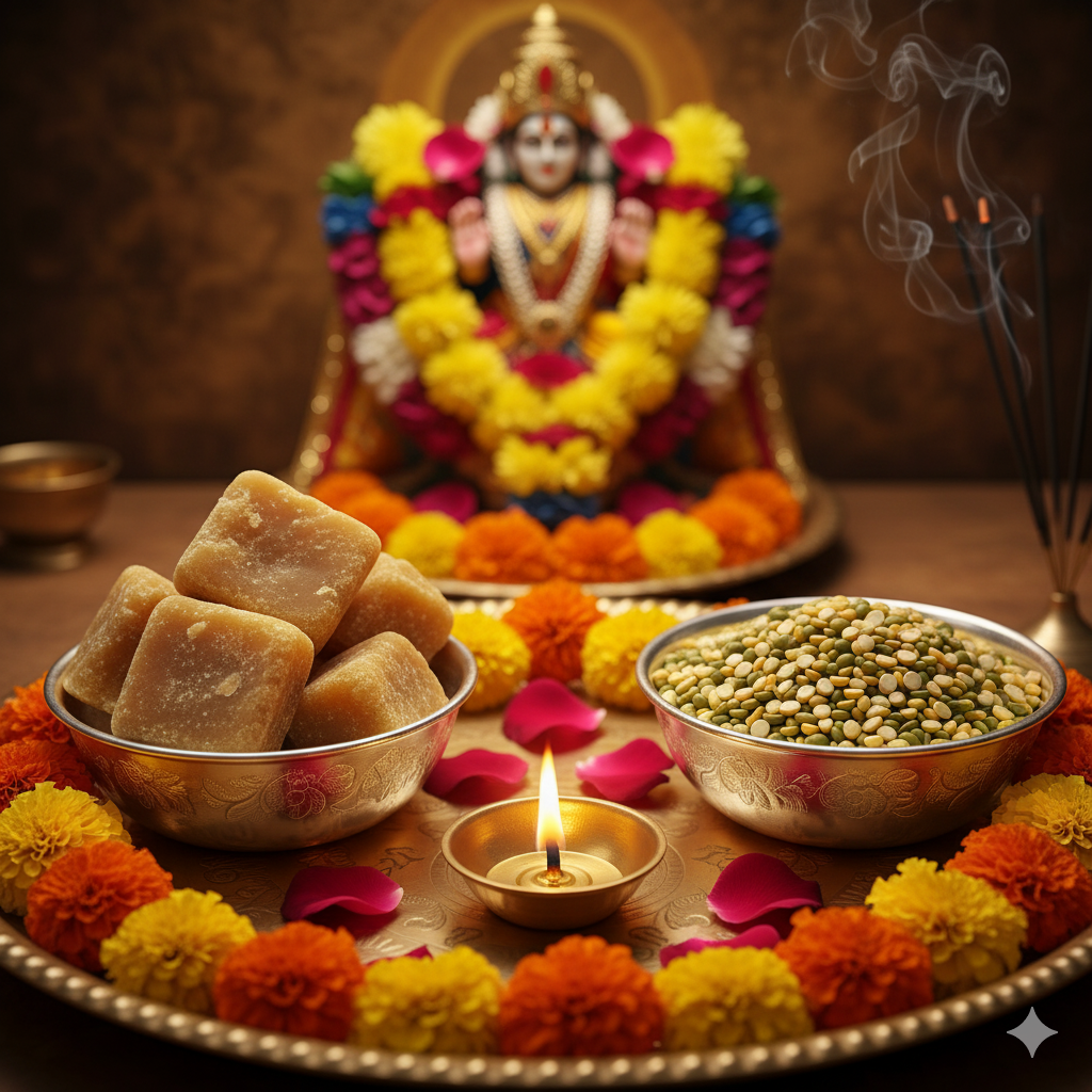 जब भक्त श्रद्धा से गुड़ और मूंग की दाल का दान करता है, तो यह पूजा अत्यंत फ…