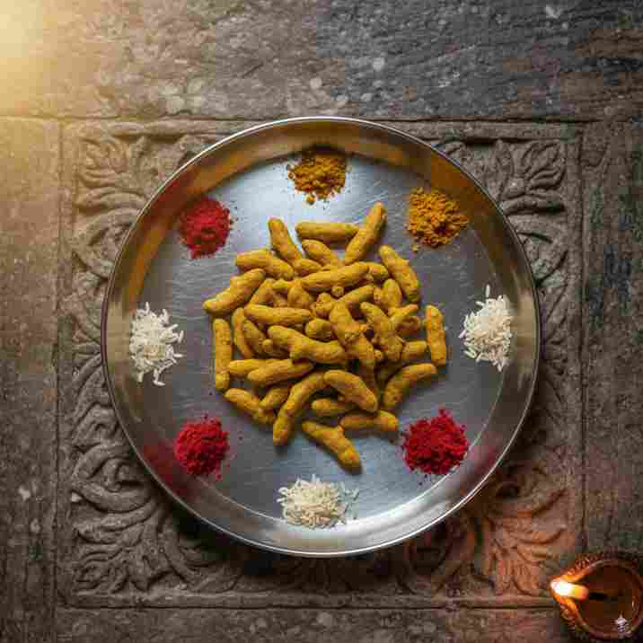 Offering turmeric to Maa Baglamukhi suppresses enemies. Offering it increases the power and influence of a person's speech.
