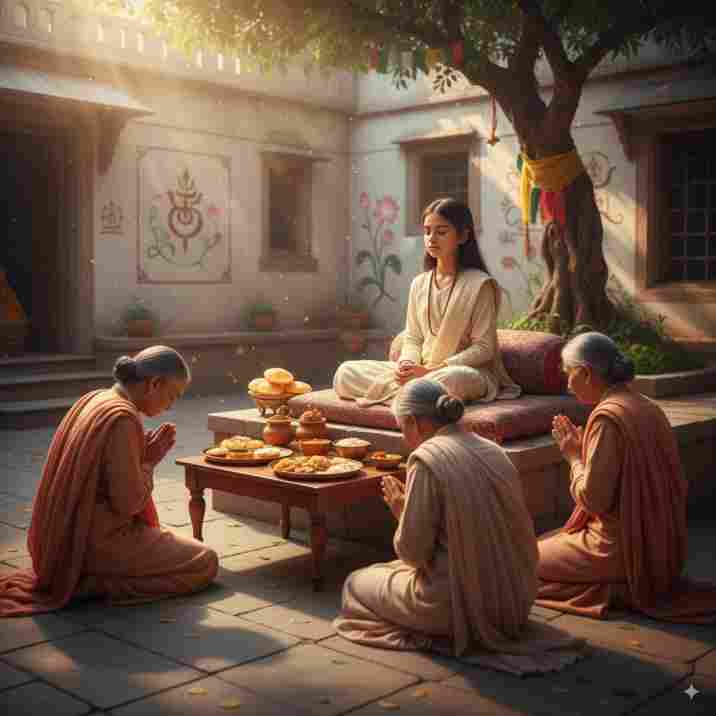 21 कन्याओं का पूजन, घर-परिवार की शांति और सुख हेतु।