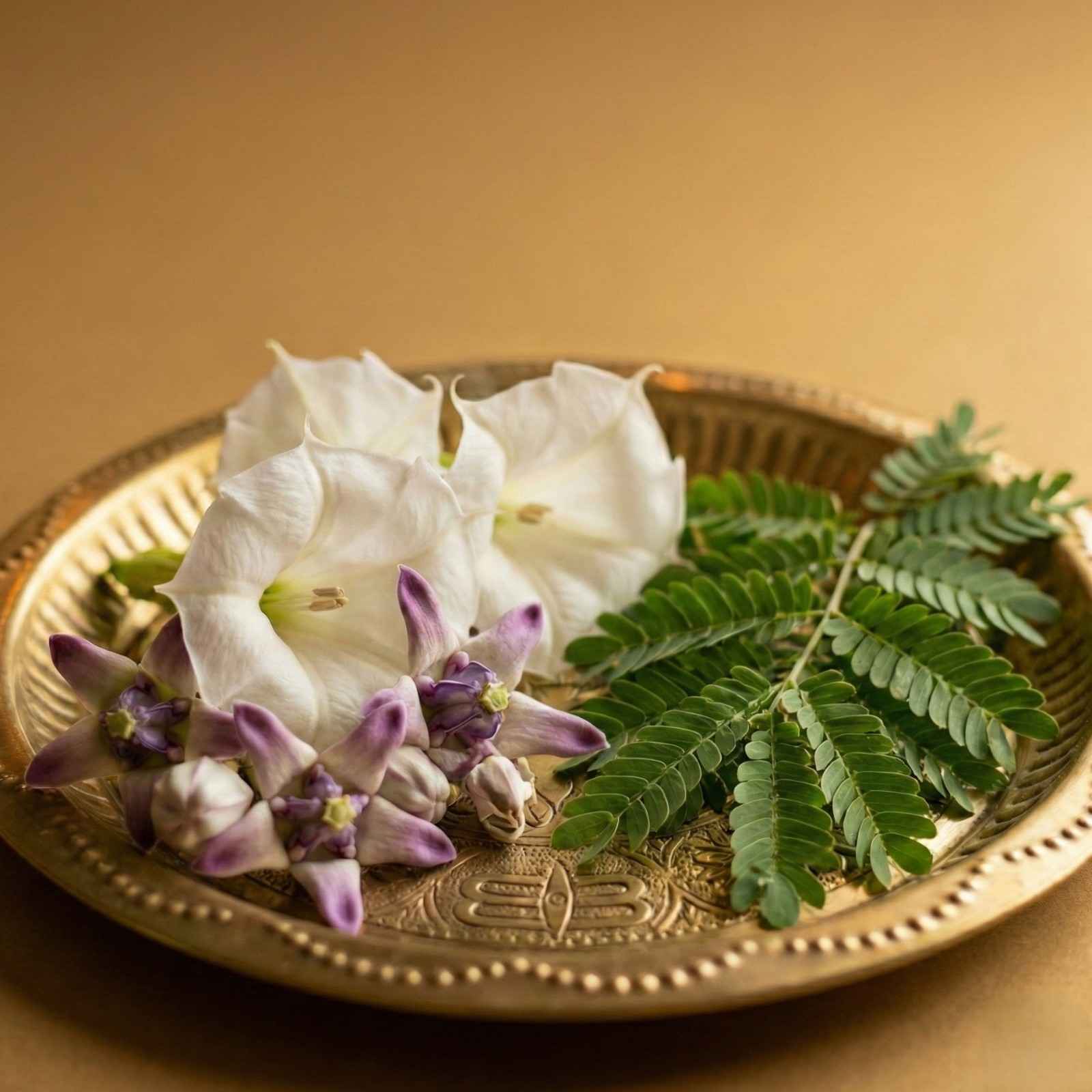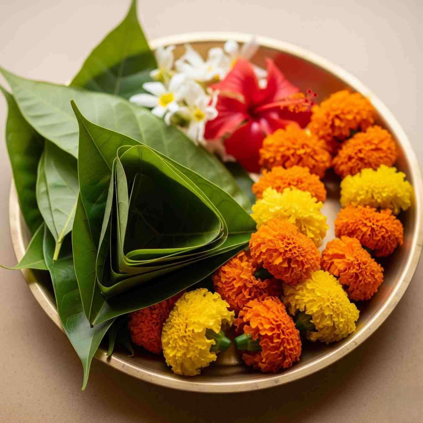 Sacred Bilva Leaves And Floral Offering Seva