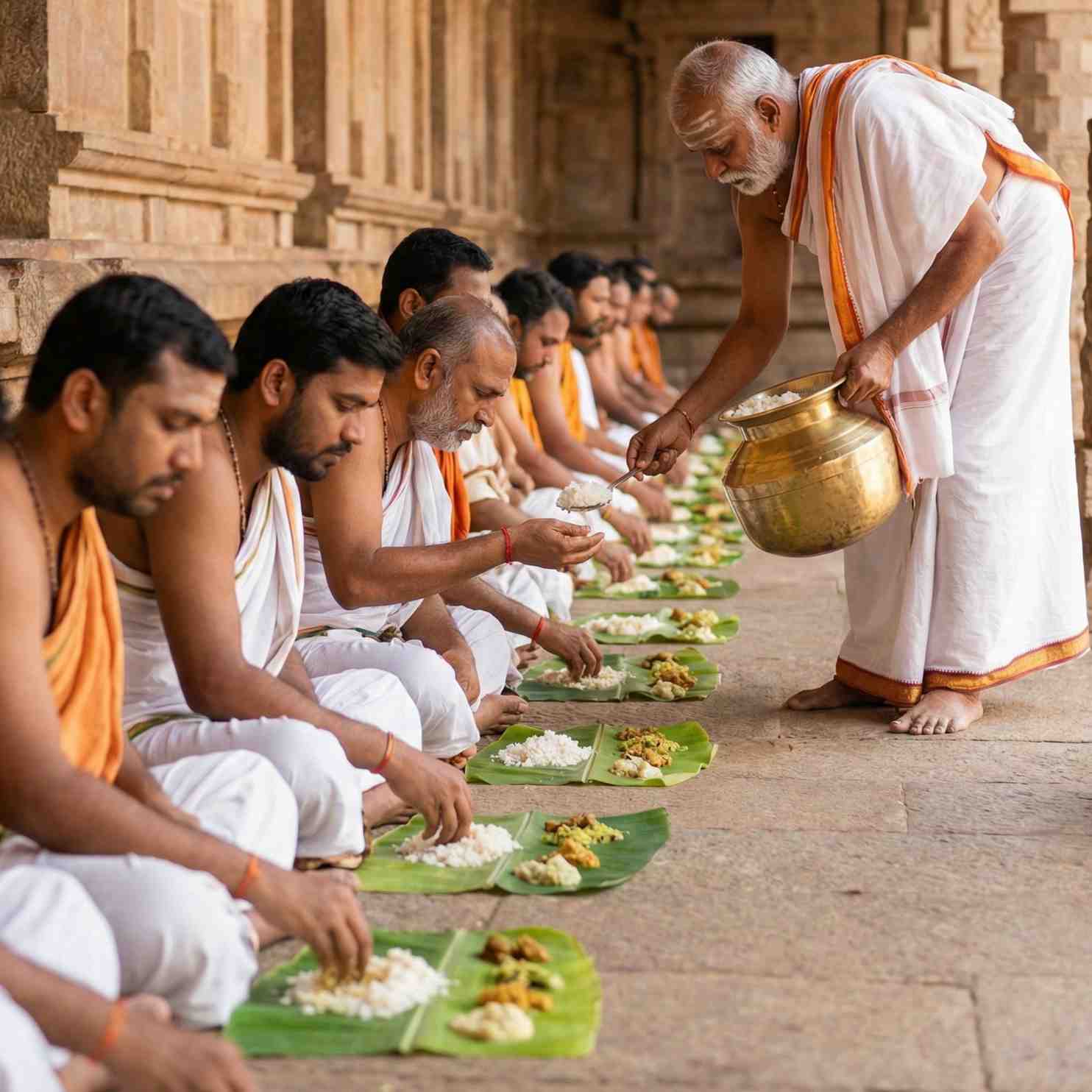 Offer a sattvic meal to the Brahmins at the conclusion of the ritual and receive their blessings.