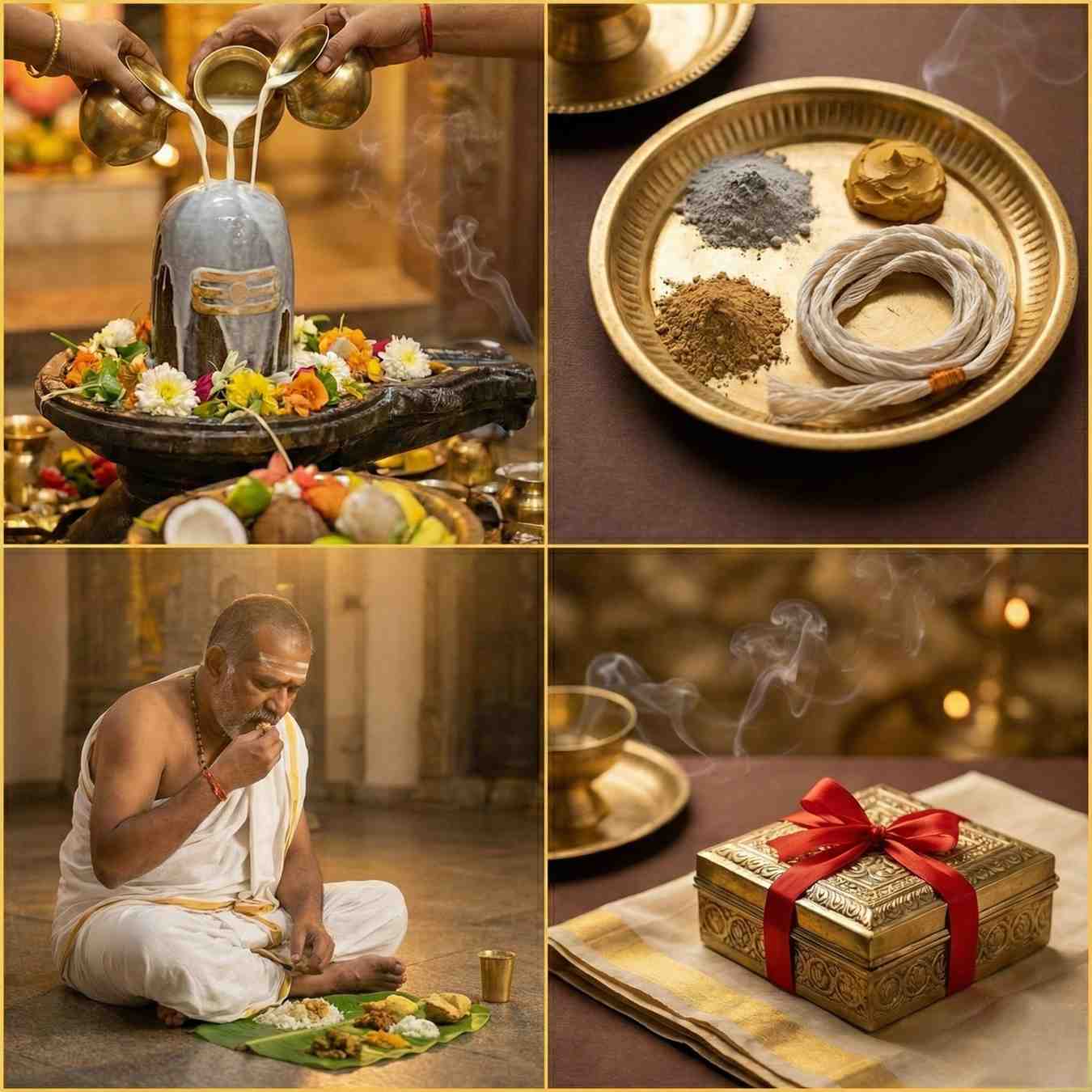 Panchamrit Snan + Vibhuti/Sandalwood/Janeu + 108 Bilva Leaves + Brahman Bhoj + Prasad Home Delivery